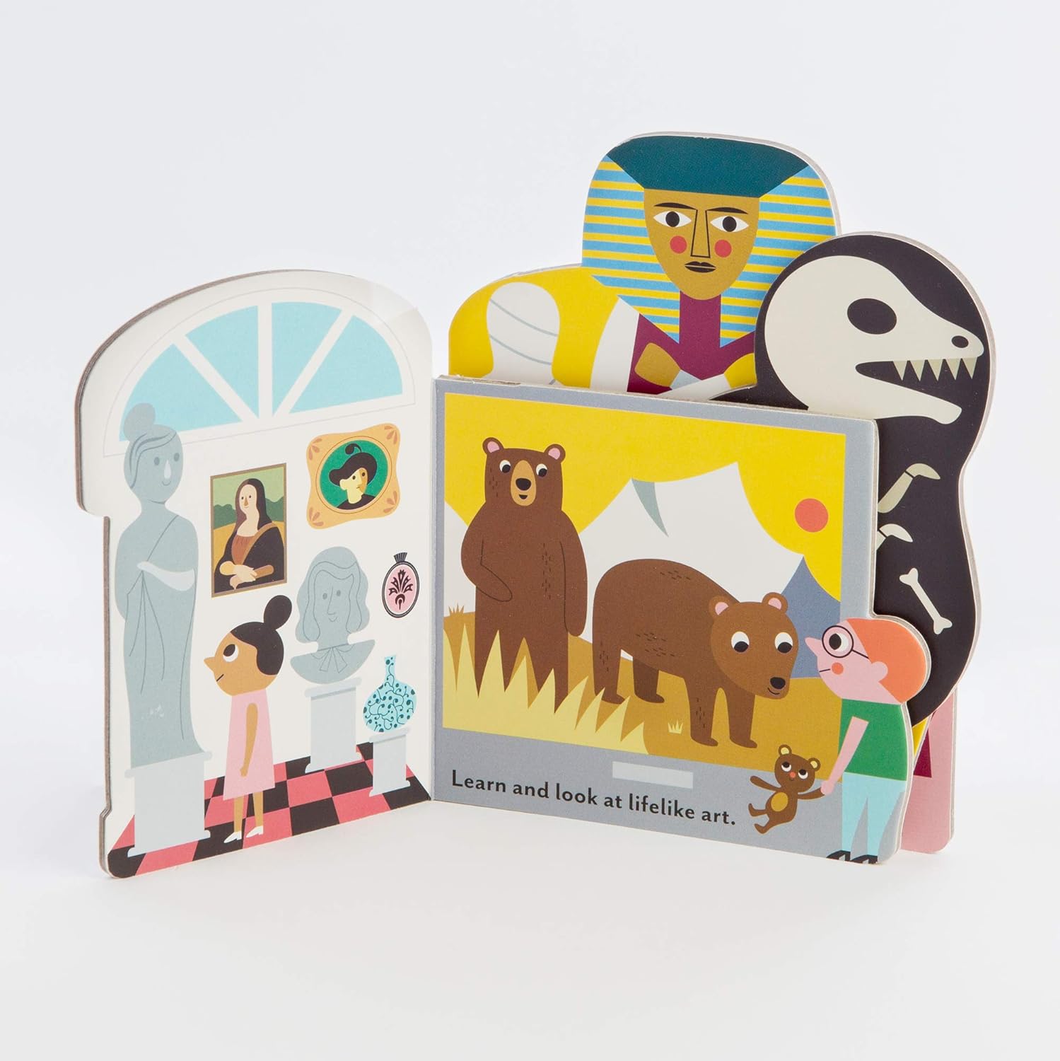Escape into a magical world with this adorable Bookscape Board Book! Discover a a museum's exhibits in this one-of-a-kind book. Each uniquely shaped page overlaps with the next to create a complete landscape when closed—and an immersive world to explore with each turn of the page when open. Delightfully petite and chunky, this book begs to be picked up thanks to its tactile, toylike quality. With simple concept-based text and jubilant illustrations, A Marvelous Museum provides a light introduction to landscapes kids will recognize—or soon encounter.