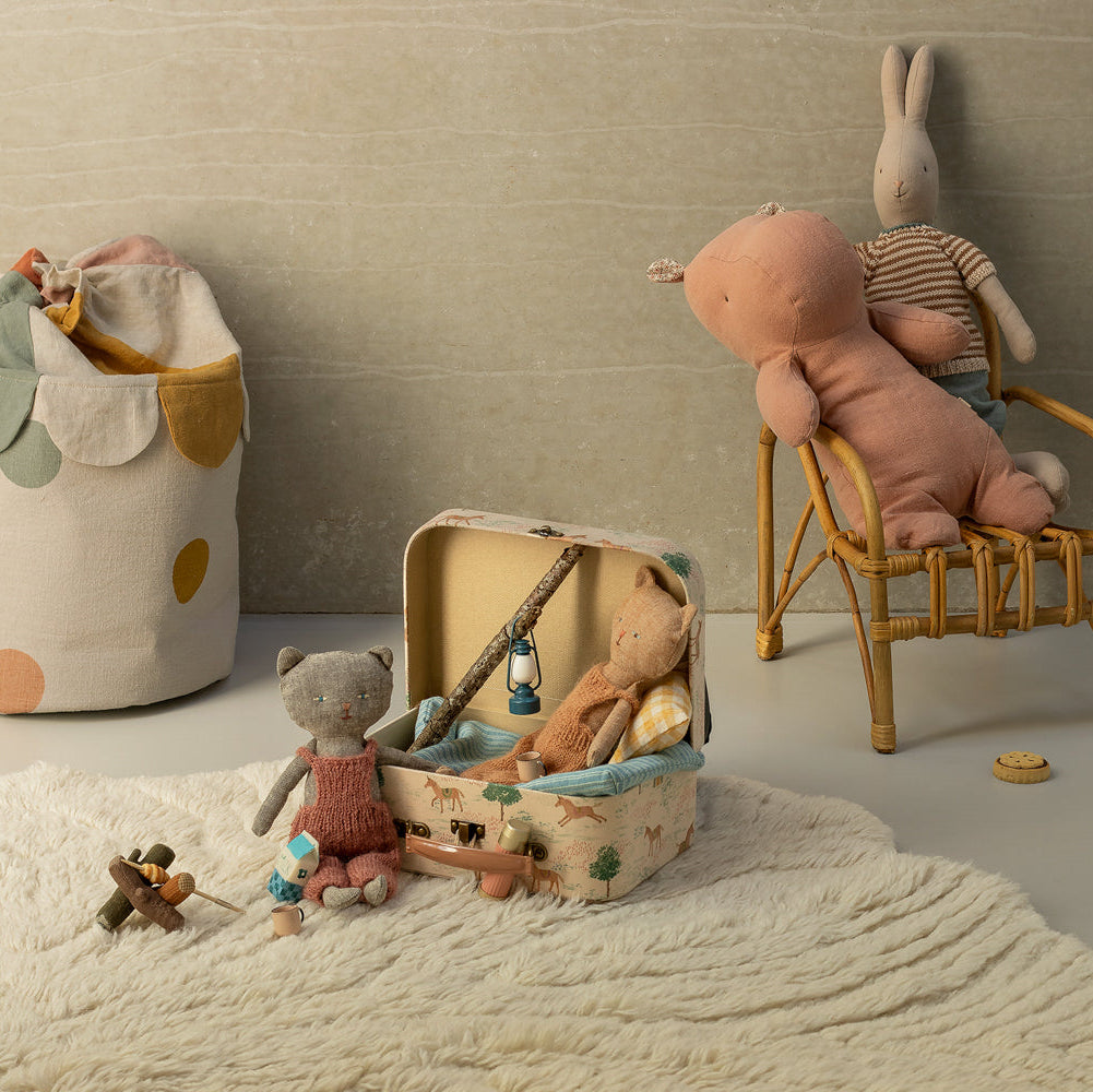 Perfectly Pocket‑Sized Pal – Standing at about 9" tall, this grey Chatons kitten cuddles right into small hands and fits seamlessly with all Maileg mini furniture for on‑the‑go adventures.