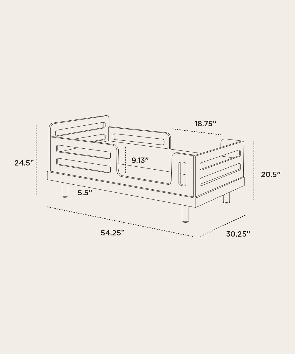 Compatible with the GREENGUARD Gold Certified Dual Firm Crib Mattress, which fits a standard crib size, it’s the perfect first standalone bed for children up to age 6 or 45" tall.