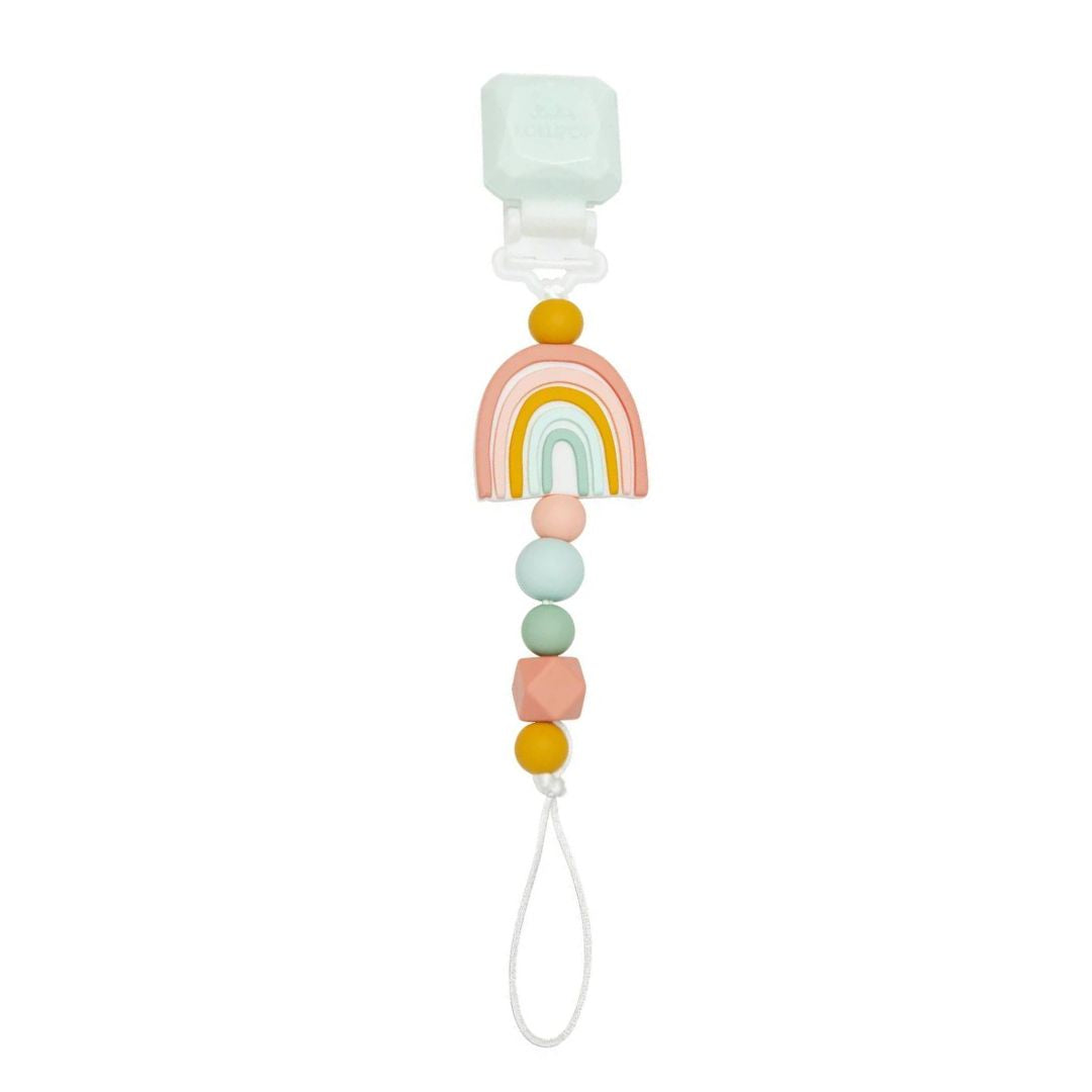 The Darling baby pacifier clip is a fun way to keep soothers, teething rings, or toys close at hand (and off the floor!). It features differently shaped food-grade silicone beads with a cute charm-style bead and a gem-stone inspired one-piece molded silicone with no screws or metal parts. It opens with ease but grips on clothing or blanket tightly for optimum security. Simply loop the baby's pacifier or toy to one end, then fasten the other end to clothing, blankets, car seats, strollers, or diaper bags. Tested regularly at a government-accredited lab to meet and exceed safety standards.