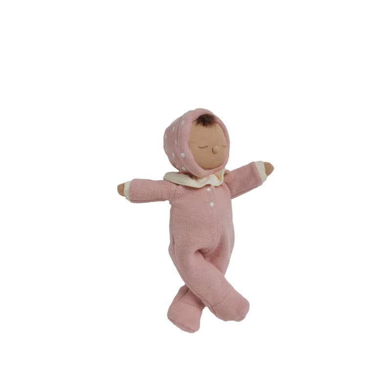 Made from the gentlest cotton and designed with a lightly weighted body for calm and comfort, this Dozy Dinkum is perfect for naptime, playtime, and every cuddle in between. A sweet brown curl peeks from under their hood, just waiting for tiny fingers to pat and stroke.