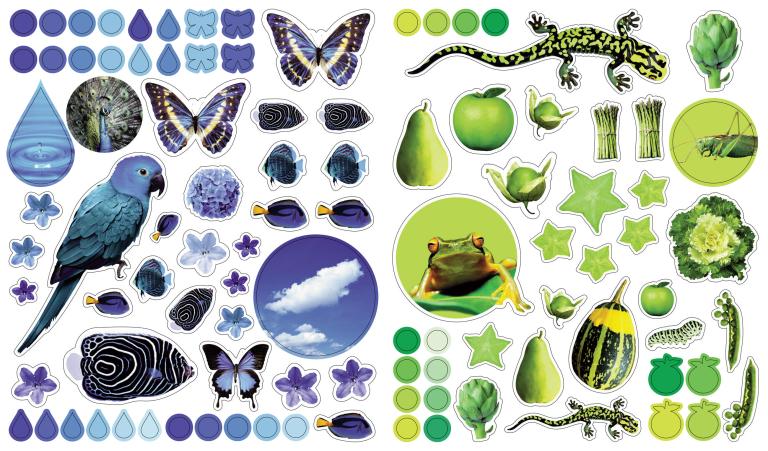 Containing stickers in every color of the rainbow, each page is full of vibrant, photorealistic images sorted by color (orange is for tigers, clownfish, pumpkins, parrots, and carrots!). Whether on windows, notebooks, lunch boxes, or scrapbooks, these peel-and-place stickers are perfect for creating your own work of art anytime, anywhere, and are designed to be stuck on, peeled off, and stuck on again without tearing or losing their “stick.” The books’ inside covers are glossy illustrated backgrounds on which kids can create lively and original sticker scenes―and then change them whenever they like.