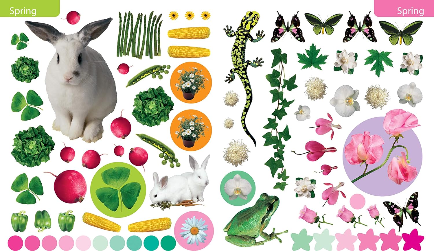 Over 400 colorful, reusable stickers — seasonal plants, animals, and nature motifs to mix, match & trade.