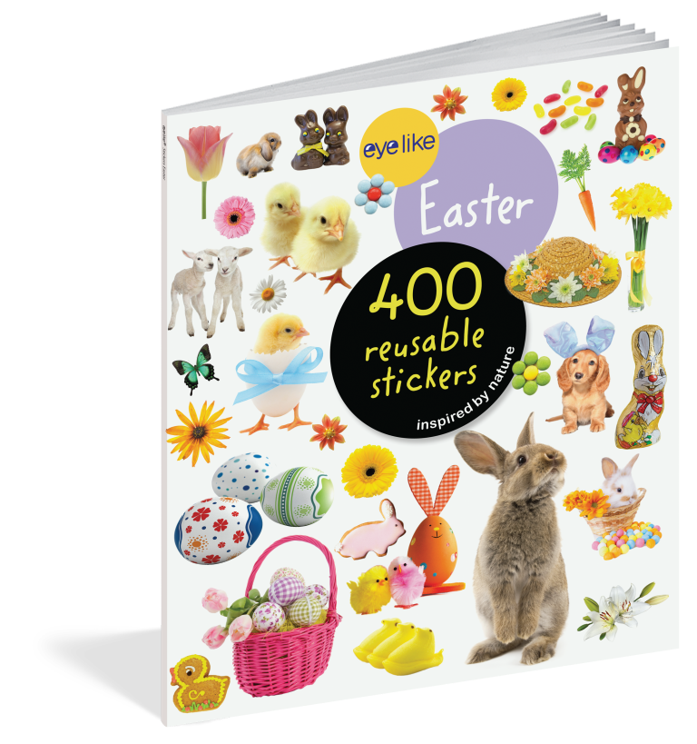 Packed with bunnies, chicks, lambs, eggs, and more, Eyelike Stickers: Easter belongs in every Easter basket and every crafter’s stash. Whether on windows, notebooks, lunch boxes, or scrapbooks, these peel-and-place stickers are perfect for creating your own work of art anytime, anywhere, and are designed to be stuck on, peeled off, and stuck on again without tearing or losing their “stick.” The books’ inside covers are glossy illustrated backgrounds on which kids can create lively and original sticker scenes―and then change them whenever they like.