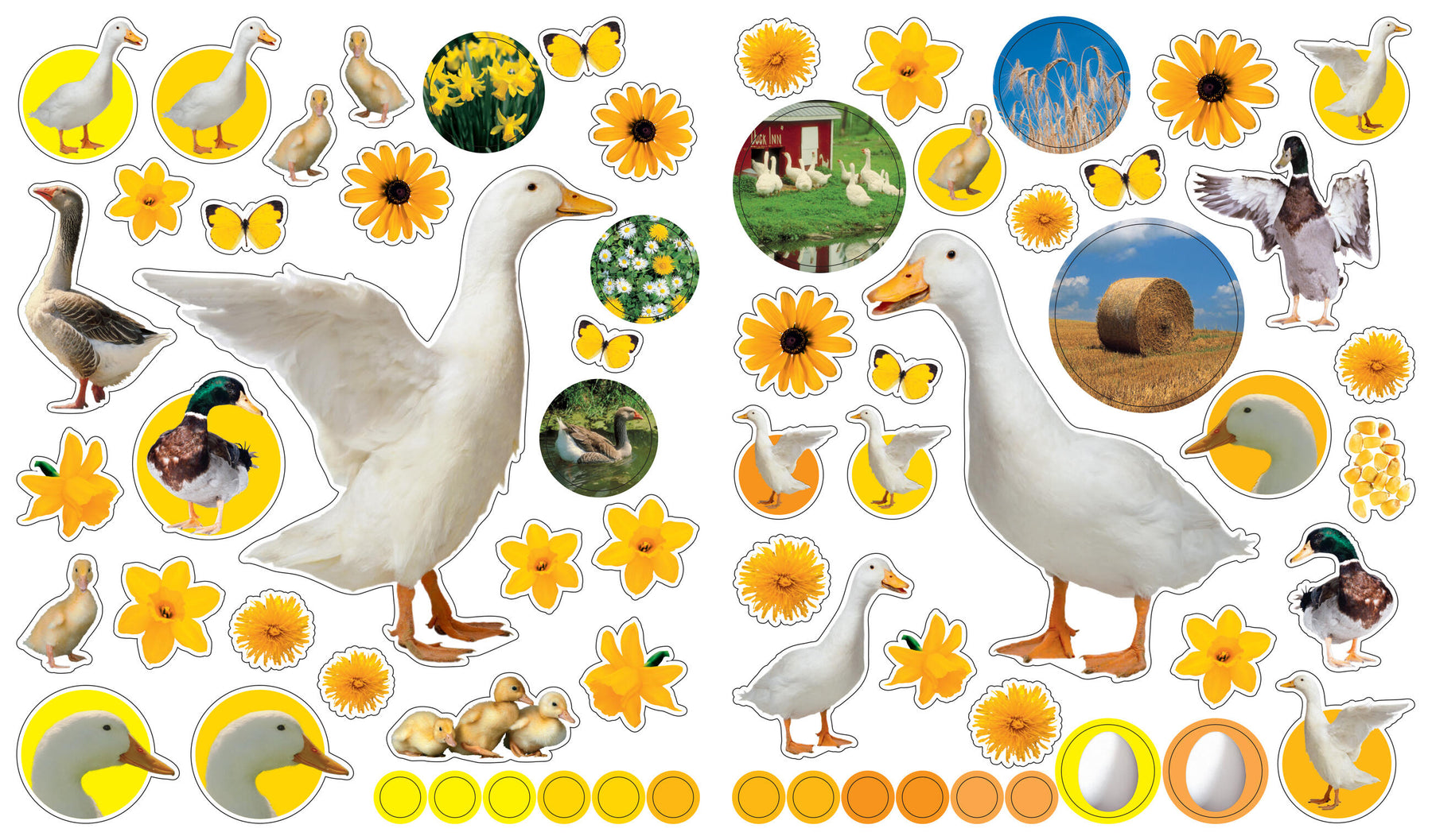 The full-color photographic stickers feature cute farm animals like lambs, pigs, horses, ducks, and more, plus a vibrant variety of farm-fresh fruits and veggies. Whether on windows, notebooks, lunch boxes, or scrapbooks, these peel-and-place stickers are perfect for creating your own work of art anytime, anywhere, and are designed to be stuck on, peeled off, and stuck on again without tearing or losing their “stick.” The books’ inside covers are glossy illustrated backgrounds on which kids can create lively and original sticker scenes―and then change them whenever they like.