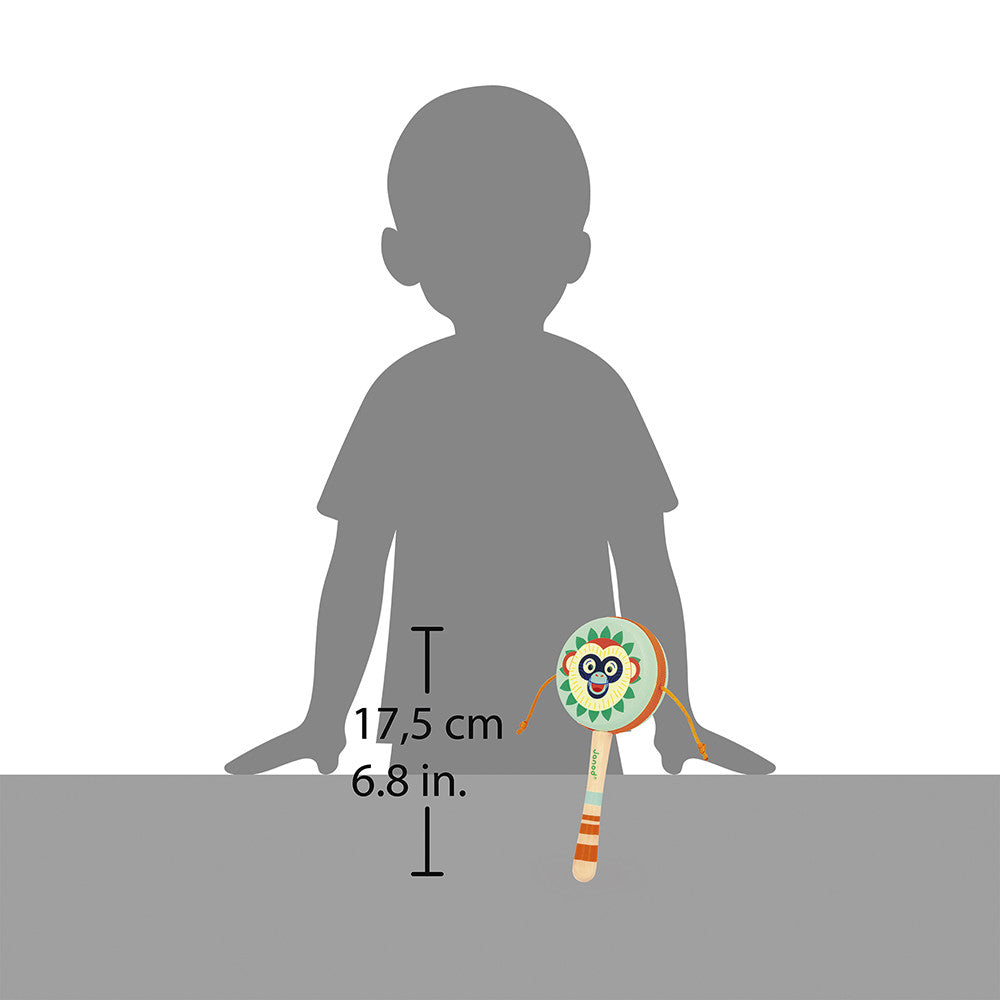 We're all crazy about this cheeky monkey! With their wooden hand drum, children can imagine their own melodies and imitate the grown-ups with their very own instrument. Its 17.5 cm size makes it easy for little ones to hold and use. The whole family can dance to the beat with this imitation toy! It's part of the Gioia range, a joyful invitation to musical awakening, enabling little ones to discover the world of sounds in a playful, sharing way. Hand drum made from wood from sustainably managed forests, FSC certified.