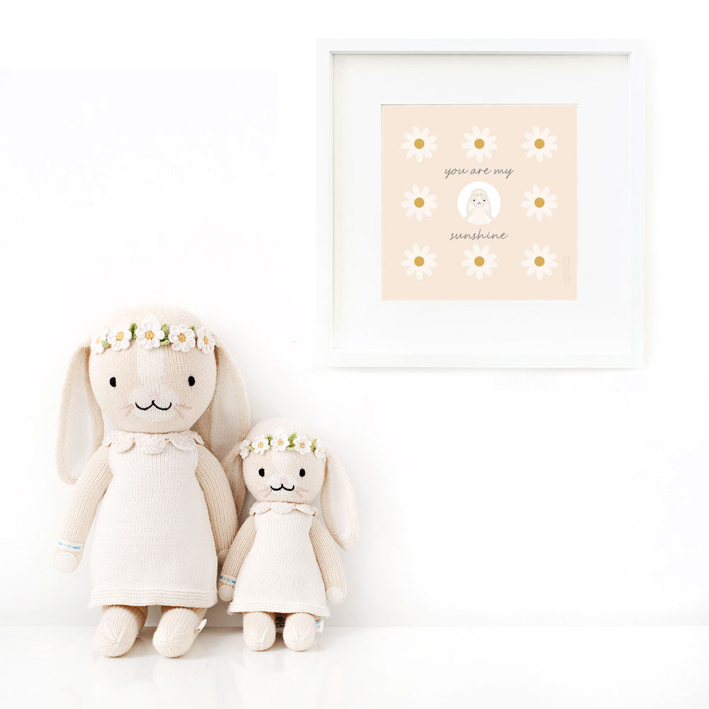An enchanting handcrafted doll designed to inspire love and kindness in children. Made with high-quality, soft materials, it's perfect for snuggles, playtime, or as a decorative piece in your child's room. Each purchase helps provide meals to children in need, making this adorable bunny not just a toy, but a way to make a positive impact. With her charming design and heartwarming story, Hannah the Bunny is sure to become a beloved companion for your little one.