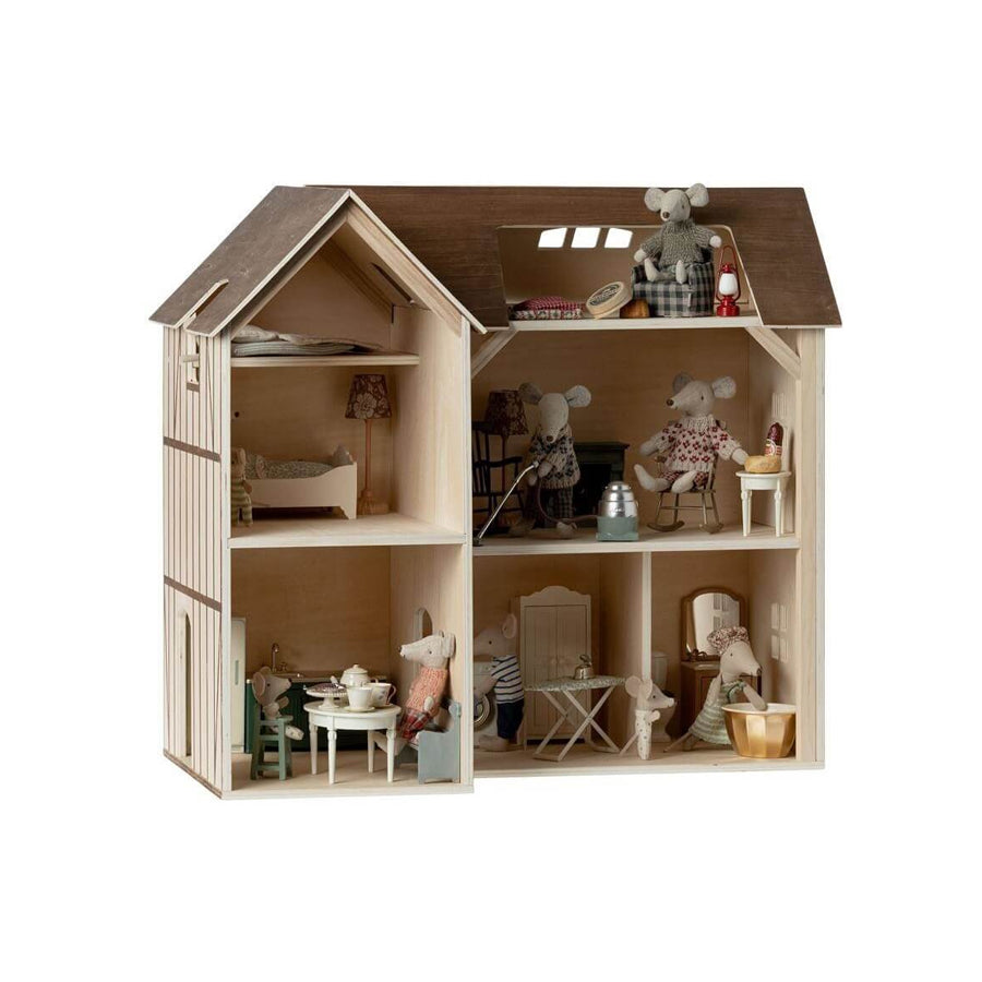 Mouse Hole Farmhouse is the perfect home for your mouse family. Decorate each room with your favorite mouse-size furniture and accessories. If the house gets too small you can add the bonus room for more fun!