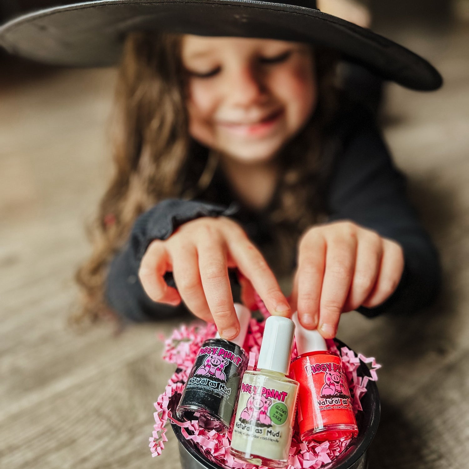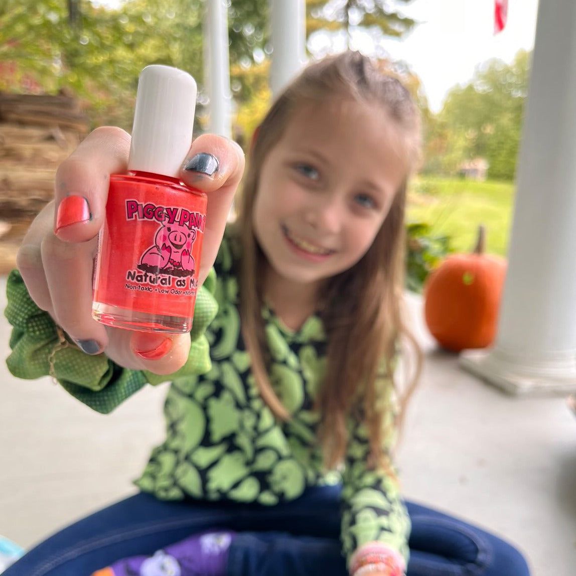 Piggy Paint is non-toxic & safe for all ages! There are no toxic chemicals; it’s free of formaldehyde, toluene, phthalates, Bisphenol A, ethyl acetate, and acetone. Say goodbye to harsh, smelly chemicals, and hello to Piggy Paint!