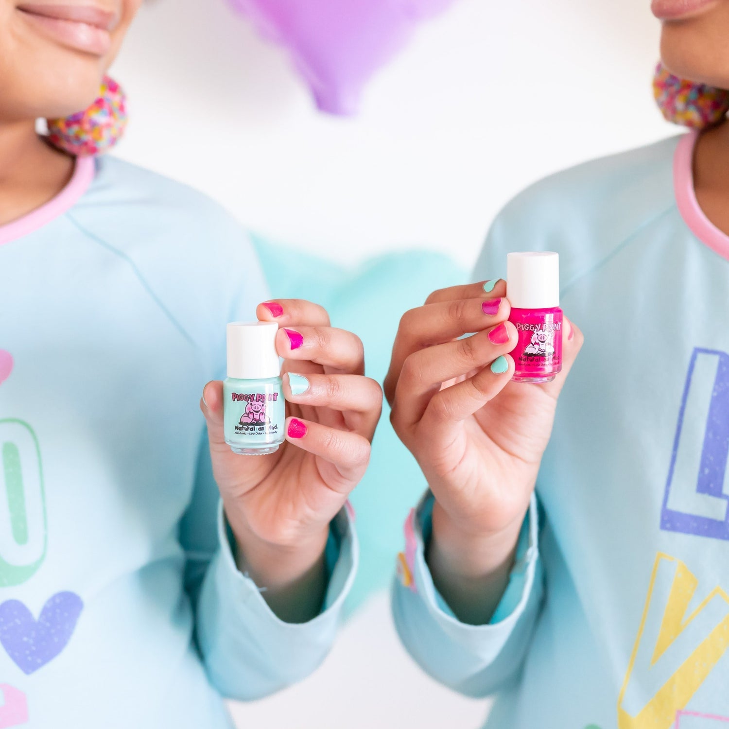 Piggy Paint is non-toxic & safe for all ages! There are no toxic chemicals; it’s free of formaldehyde, toluene, phthalates, Bisphenol A, ethyl acetate, and acetone. Say goodbye to harsh, smelly chemicals, and hello to Piggy Paint!