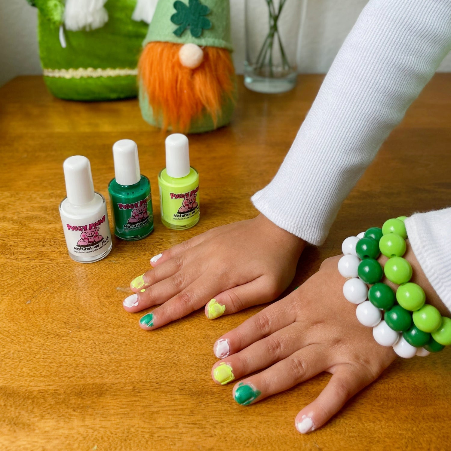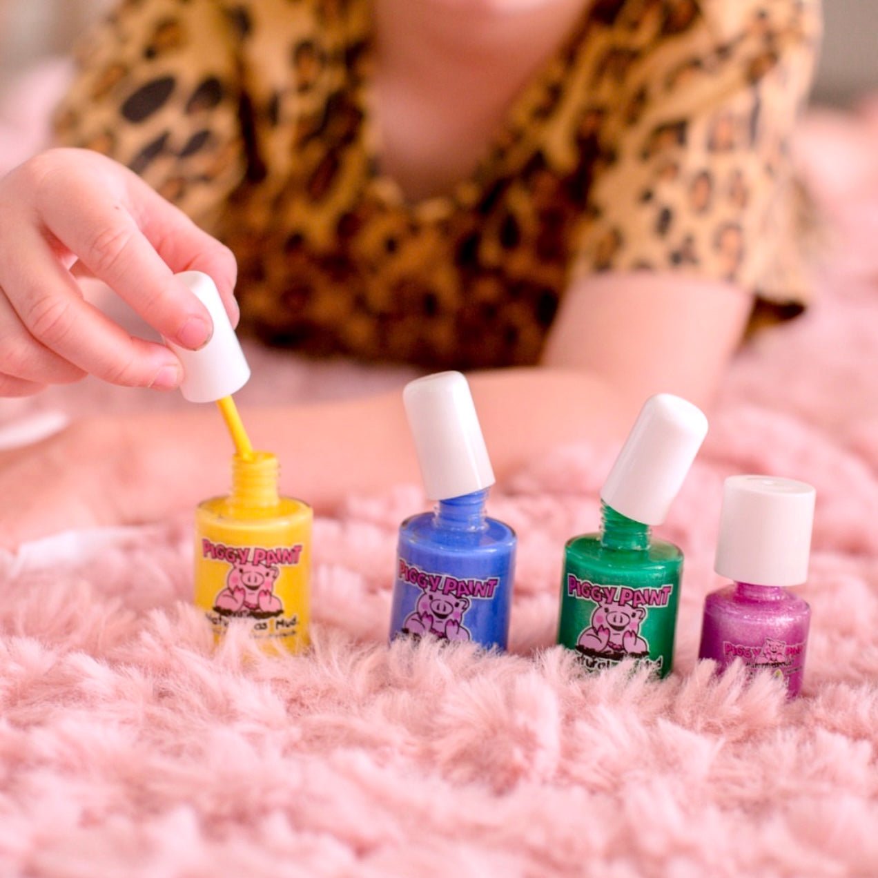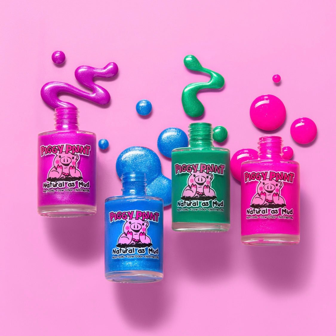 Piggy Paint is non-toxic & safe for all ages! There are no toxic chemicals; it’s free of formaldehyde, toluene, phthalates, Bisphenol A, ethyl acetate, and acetone. Say goodbye to harsh, smelly chemicals, and hello to Piggy Paint!