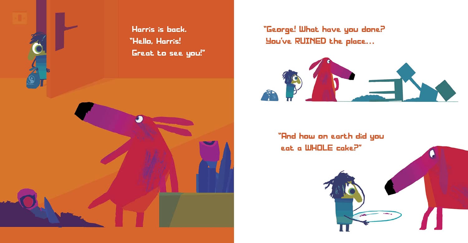 George is a dog with all the best intentions. And his owner, Harry, has all the best hopes that George will be a well-behaved dog when he leaves him alone for the day. But when George spies a delicious cake sitting on the kitchen table, his resolve starts to waver. You see, George loves cake. . . . Uh-oh. What to do now? It’s so hard to be a good dog when there are cats to chase and flowers to dig up! What ever will Harry say when he gets back? Chris Haughton’s fetchingly funny story and vibrant, retro illustrations are sure to lure dog lovers of all ages — and anyone who has ever met a temptation too good to resist.