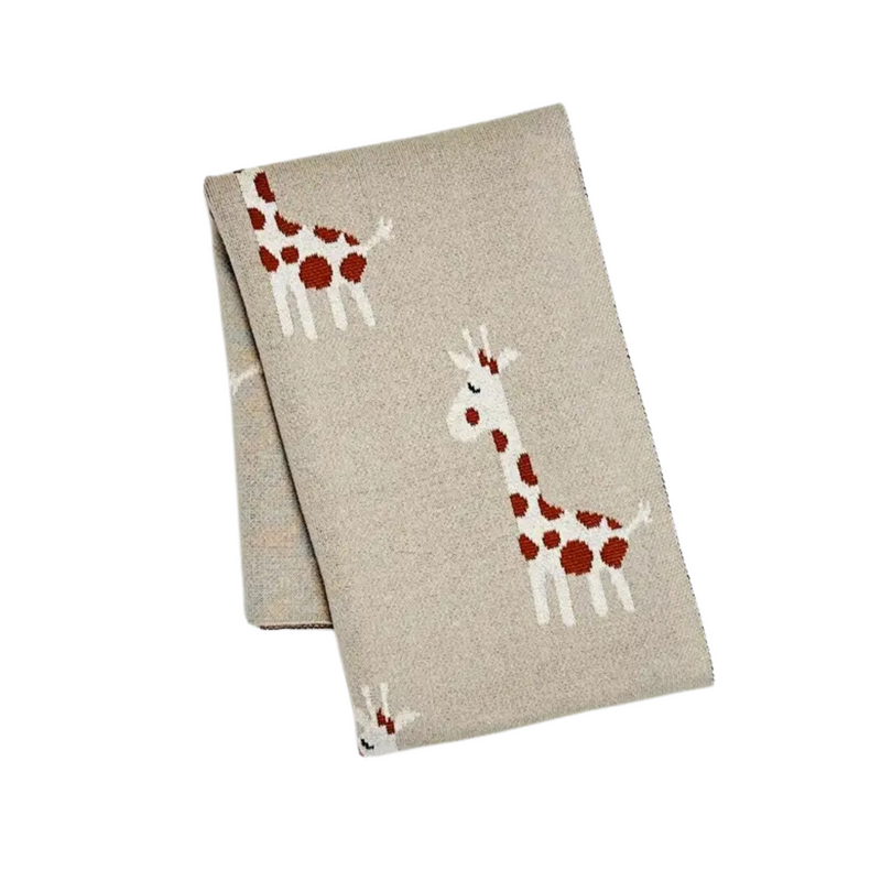 • Luxurious 100% Organic Cotton Knitted Baby Blanket featuring adorable giraffe, large size - 30x42”