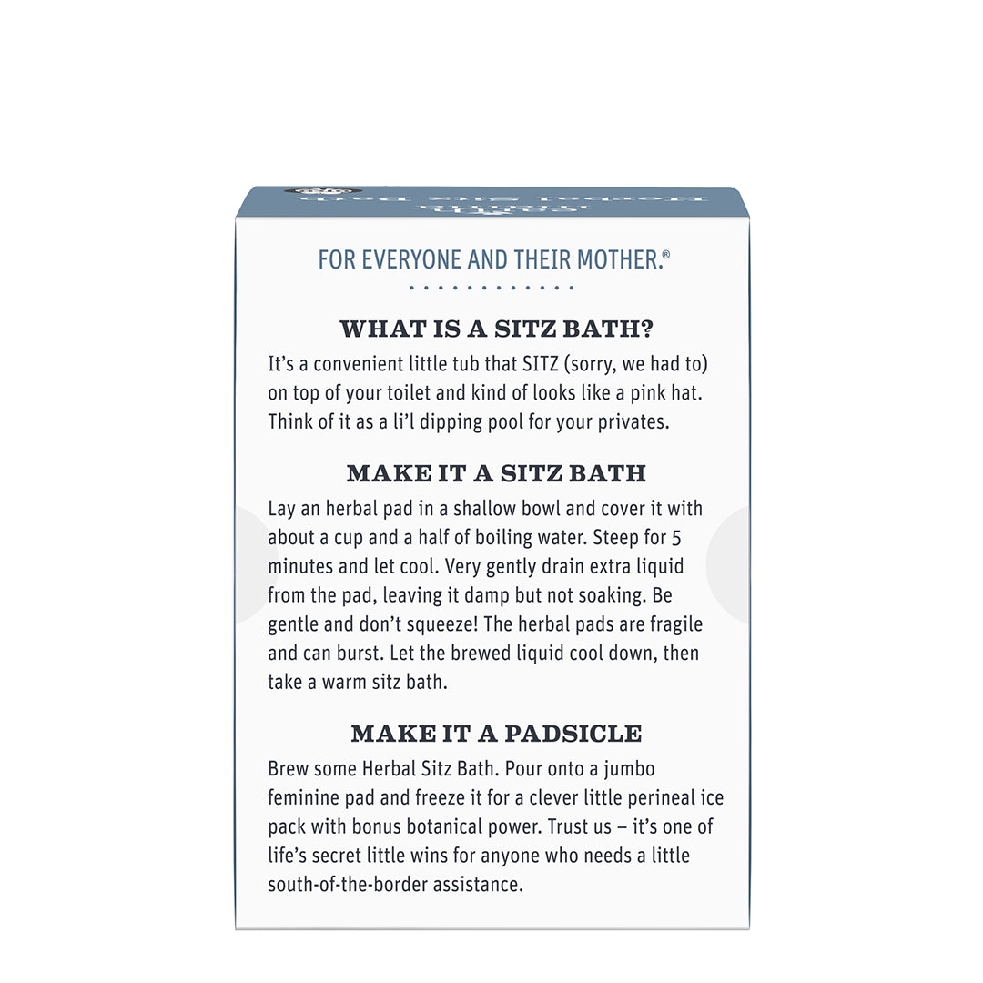 • Herbal Sitz Bath sachets can be used as a soothing pad for your nethers after they’ve been brewed--warm or cool. Also, use the extra brewed solution to pour on a postpartum pad and freeze for extra relief.