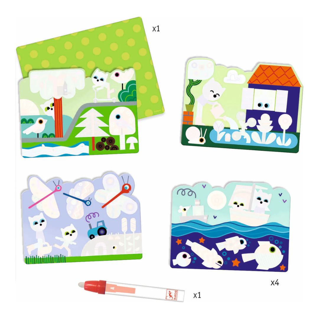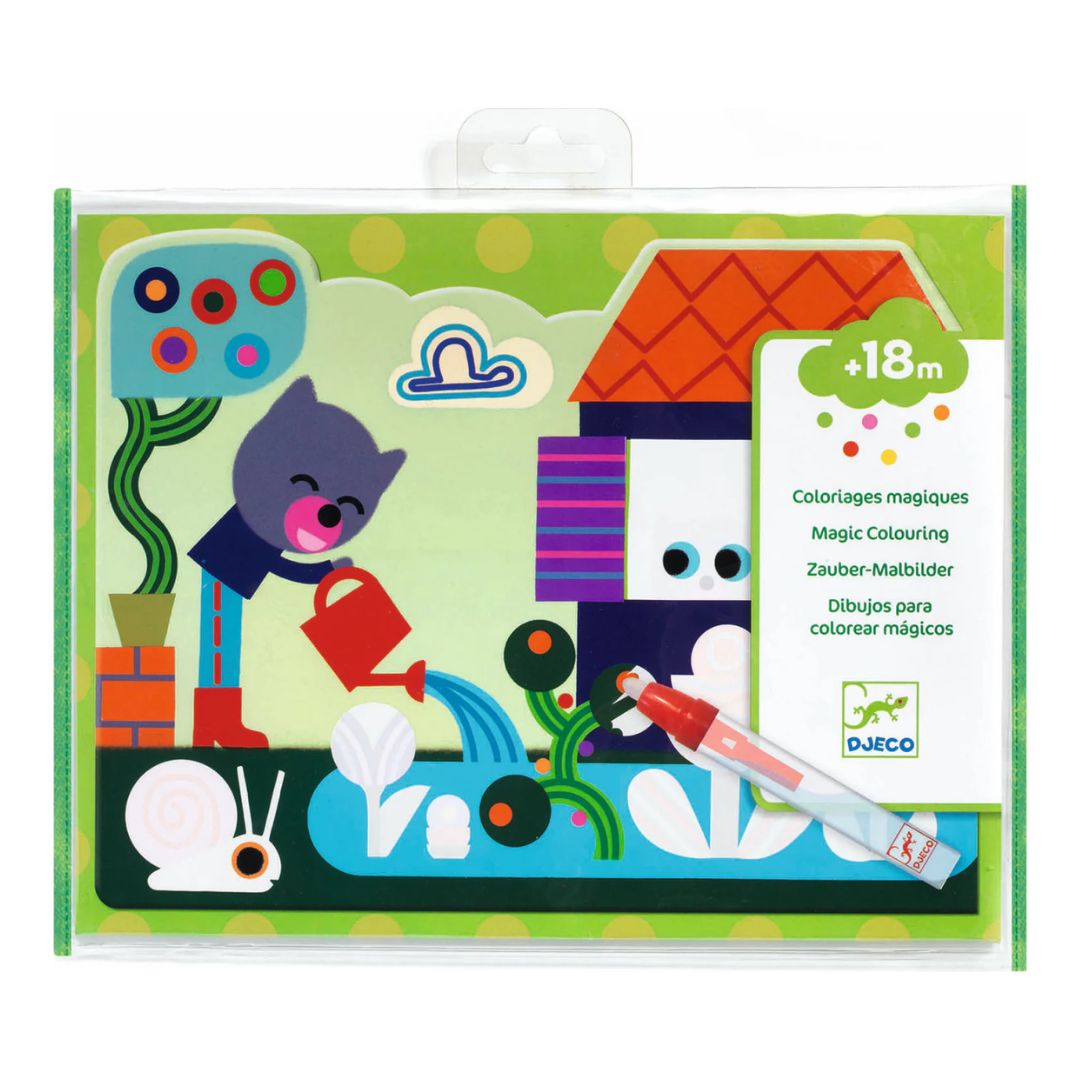 Introduce coloring in a safe, no mess, and easy way with the Djeco Paint with Water - Hidden in the Garden. Fill the pen with water, then start coloring to reveal all sorts of surprises. When it’s dry, they can start again, indefinitely!
