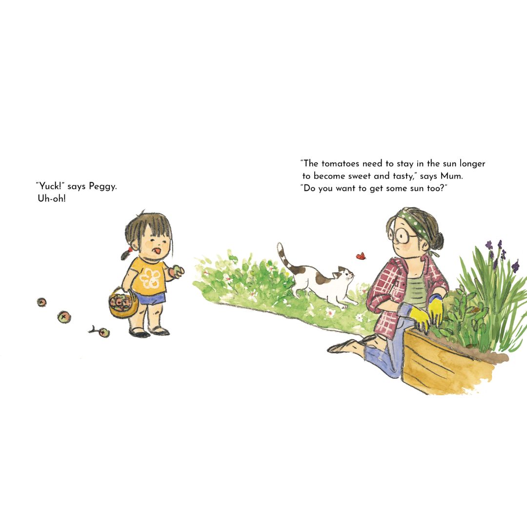 Join Peggy and her mother on a delightful day in the garden! Determined to help with every task, Peggy eagerly exclaims, "I’ll do it, I’ll do it!" as she plants beans, waters seedlings, removes weeds and tastes raspberries. Though the results aren’t always perfect, Peggy’s cheerful spirit never waivers.