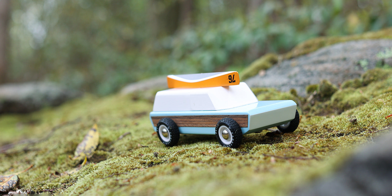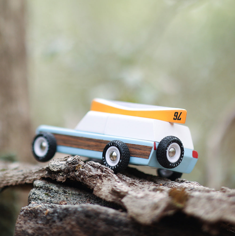 The iconic shape, wood sides, magnetic canoe on top, beefy new tires, everything screams adventure, camping, and good old times. Miniature learning tool on how to adventure properly. Pairs perfectly with Candylab Campers.