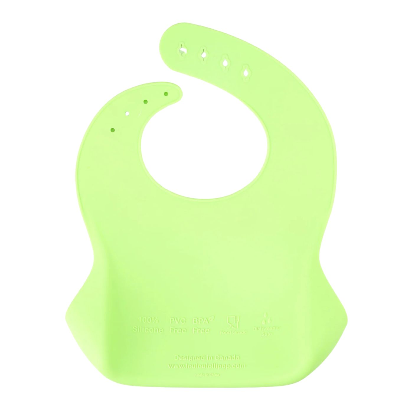 Loulou Lollipop's silicone bibs are buttery soft, waterproof, and stain-resistant. It is easy to clean; simply wipe down for a quick cleaning or put it in the top rack dishwasher for a deep clean. It features a wide catch-all pouch that sits below a high chair tray – perfect for collecting food, crumbs, and spills. Reinforced buttonholes for a durable and adjustable fit for long-lasting wear, suitable for ages 3 - 36 months. This handy bib is available in various modern colors and fresh designs to make mealtime fun and enjoyable.
