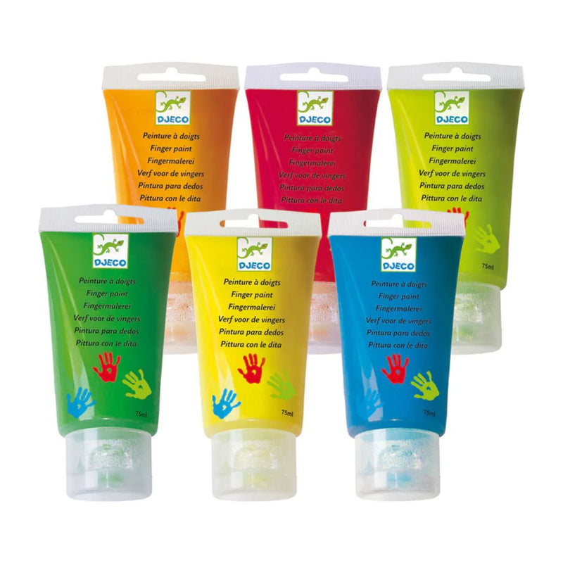 - Contents: 6 large tubes of finger paint (6x75ml): light green, dark green, red, orange, yellow and blue, plus 1 palette