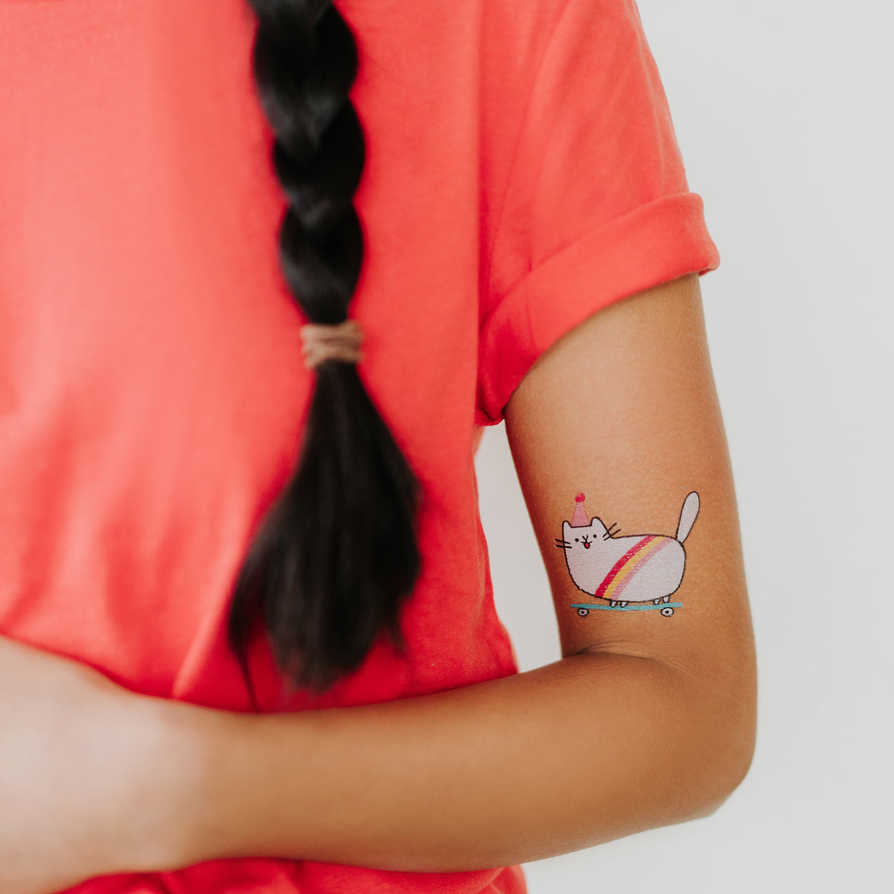 Tattly tattoos are printed with cruelty-free and vegan ink, lasting on average 2-4 days. We suggest placing on oil-free areas where skin does not stretch and keep them clean!