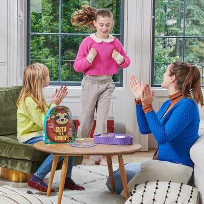 A fast-moving improv game for all ages that combines imagination and a little silliness. A player draws a WHO card, a WHAT card, then spins for HOW, and briefly acts out the combination. Sometimes challenging, always a lot of fun.