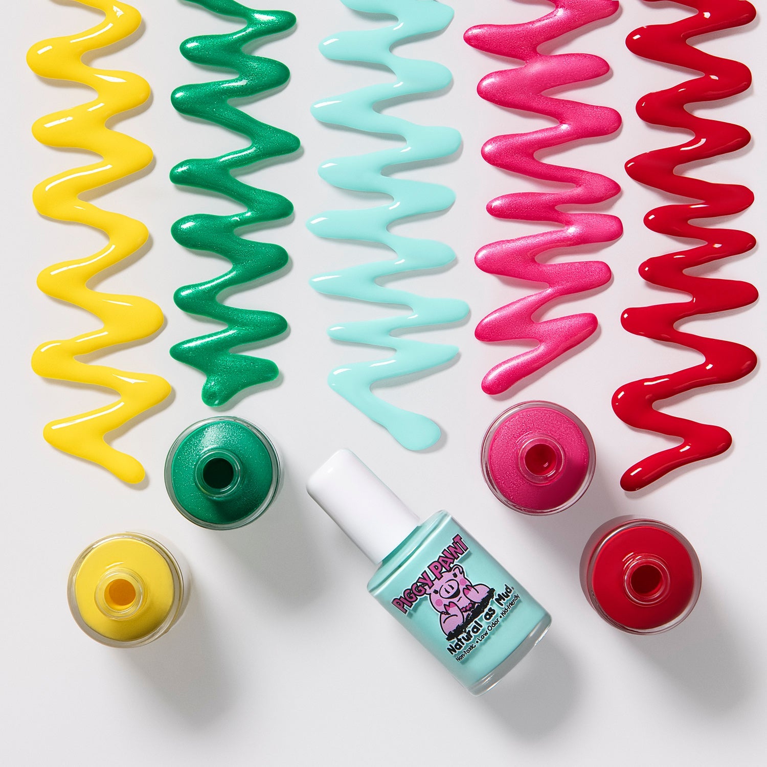 Piggy Paint is non-toxic & safe for all ages! There are no toxic chemicals; it’s free of formaldehyde, toluene, phthalates, Bisphenol A, ethyl acetate, and acetone. Say goodbye to harsh, smelly chemicals, and hello to Piggy Paint!