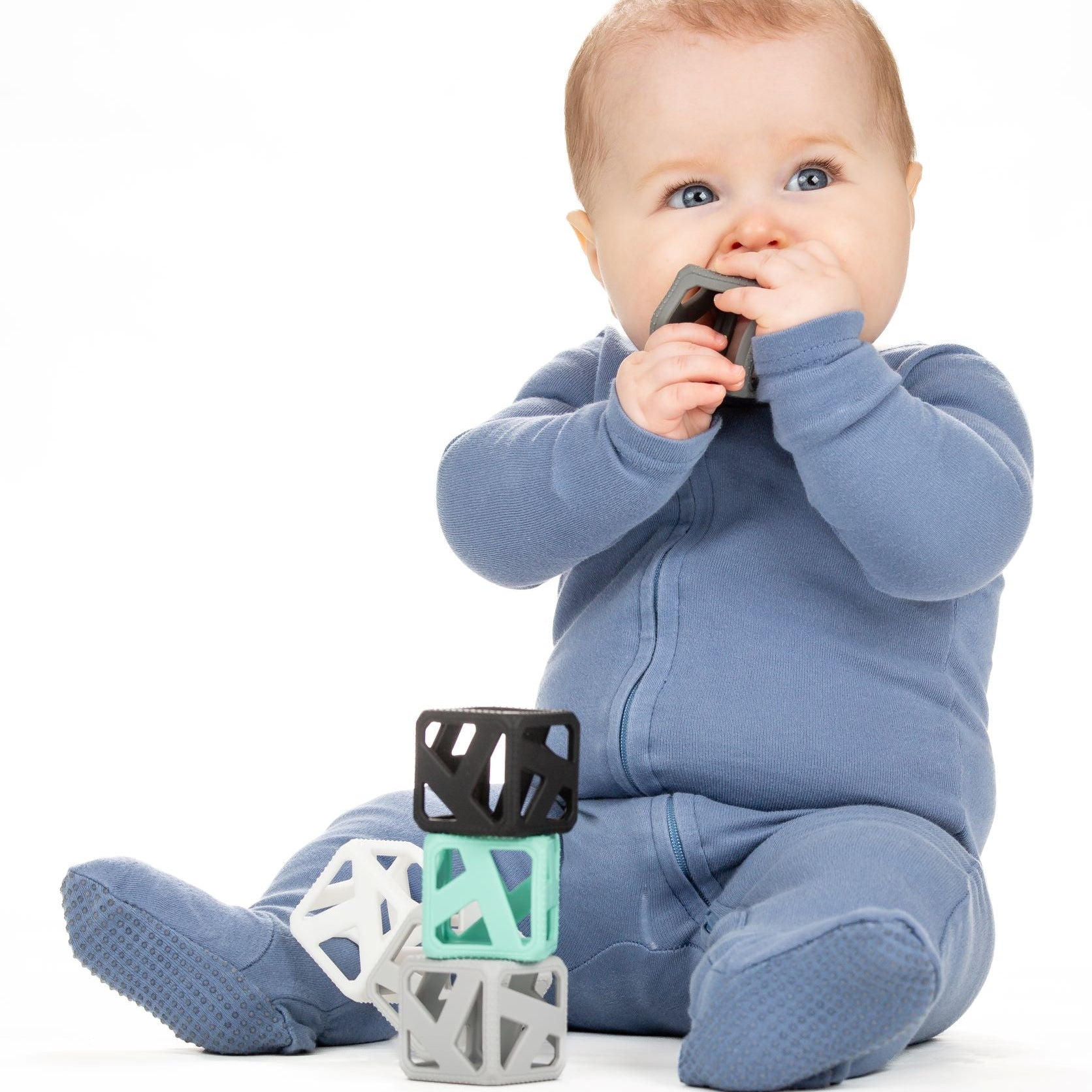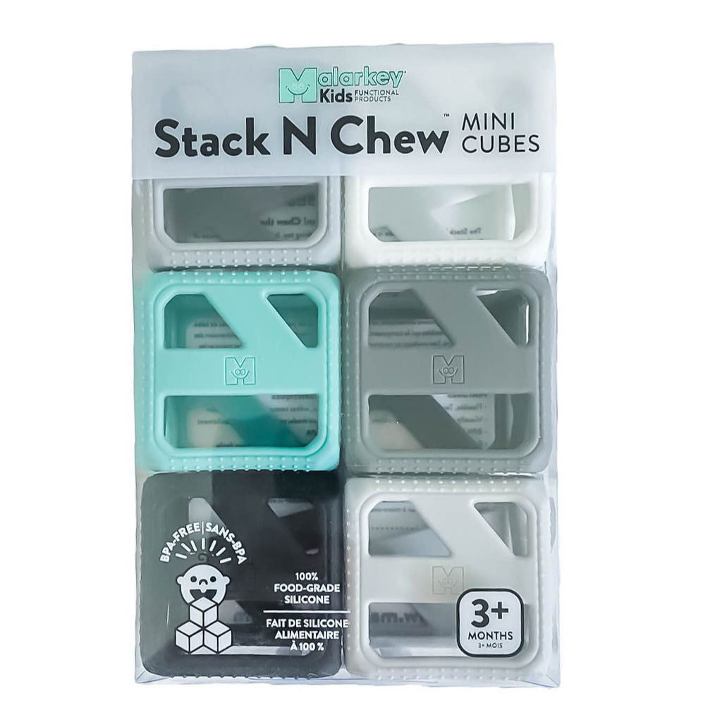 Stack them! Squeeze them! Chew them! The Stack N Chew Mini Cubes are a developmental teething toy. They are BPA-Free and made of food-grade silicone, making it safe for baby's tender gums. The flexible holes help strengthen baby's gripping skills. The contrasting modern colors stimulate hand-eye coordination and promote motor skills such as stacking and carrying. Easy to travel with, it encourages imagination - even for water play!