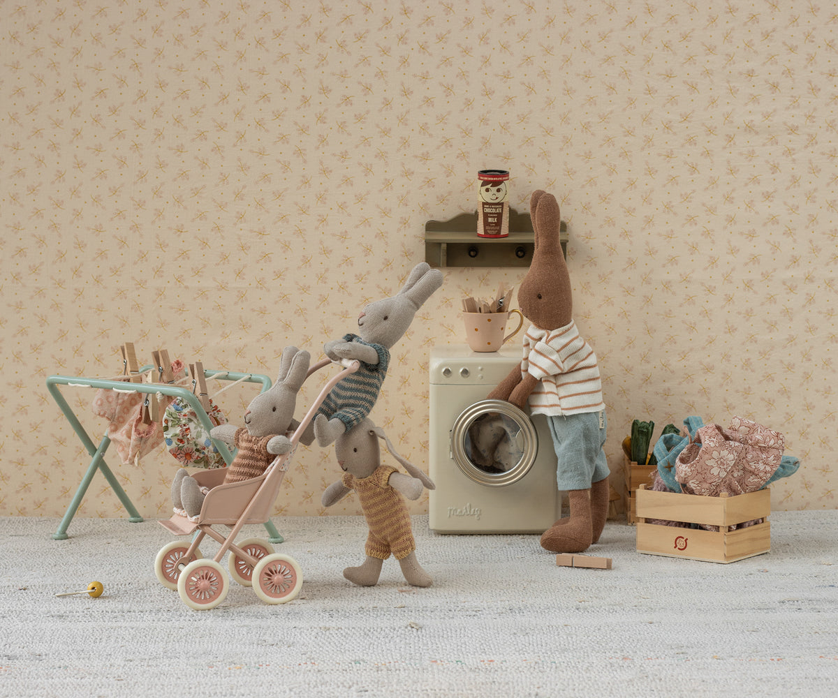 This Maileg stroller is perfect for bunny/rabbit size micro. The wagon is a good help for the loving bunny family, so they can bring their babies along on any day trips to the park and around the city.