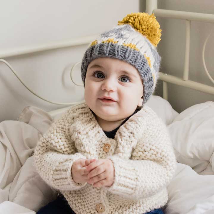 This Huggalugs hat is partially knit from recycled, sustainable Polyester yarn made from plastic bottles, a mission to help reduce the world's plastic pollution problem.