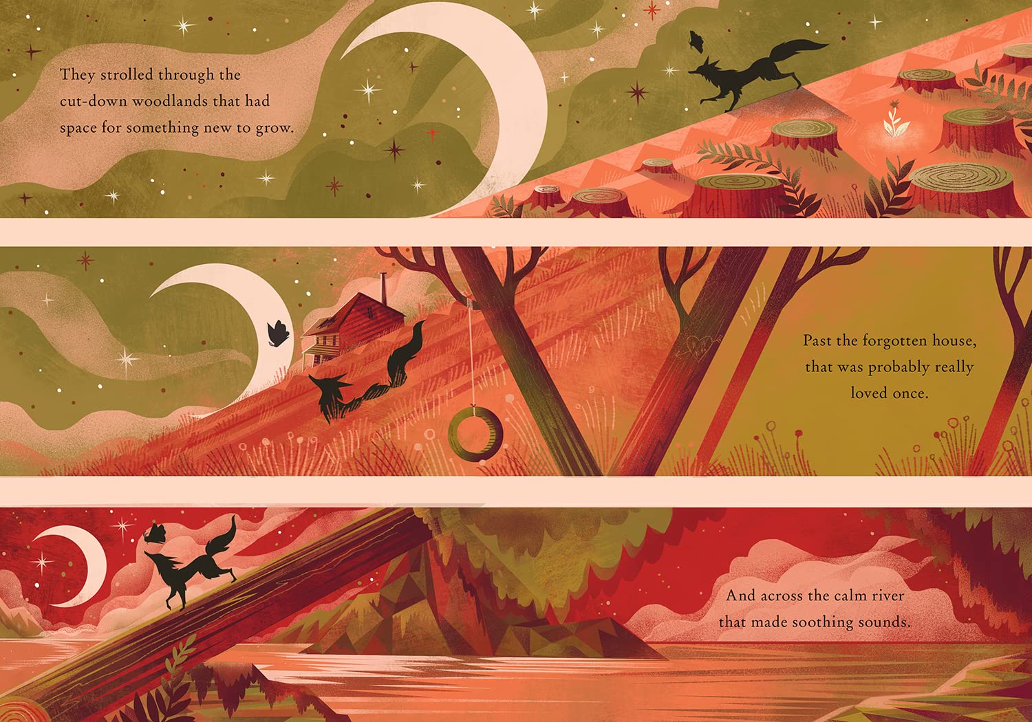 One morning, Fox is drawn toward the forest. There, in a clearing, he sees something small and silent, perhaps forgotten. It’s a bird, lying as still as can be. Fox is confused, upset, and angry. Is the bird broken? Why doesn’t it move or sing, no matter what Fox does? His curious antics are spied by a little moth, who shares a comforting thought about the circles in the sky—that the sun, even after it sets, is reflected by the moon and the stars, reminding us of its light. In an author-illustrator debut, Karl James Mountford pairs a text at once lyrical and humorous, meditative and down-to-earth with glorious, multilayered artwork that will take your breath away. Told with sensitivity and an enchanting visual style, this story of the ineffable nature of death and life has the feel of a universal folktale for modern times.