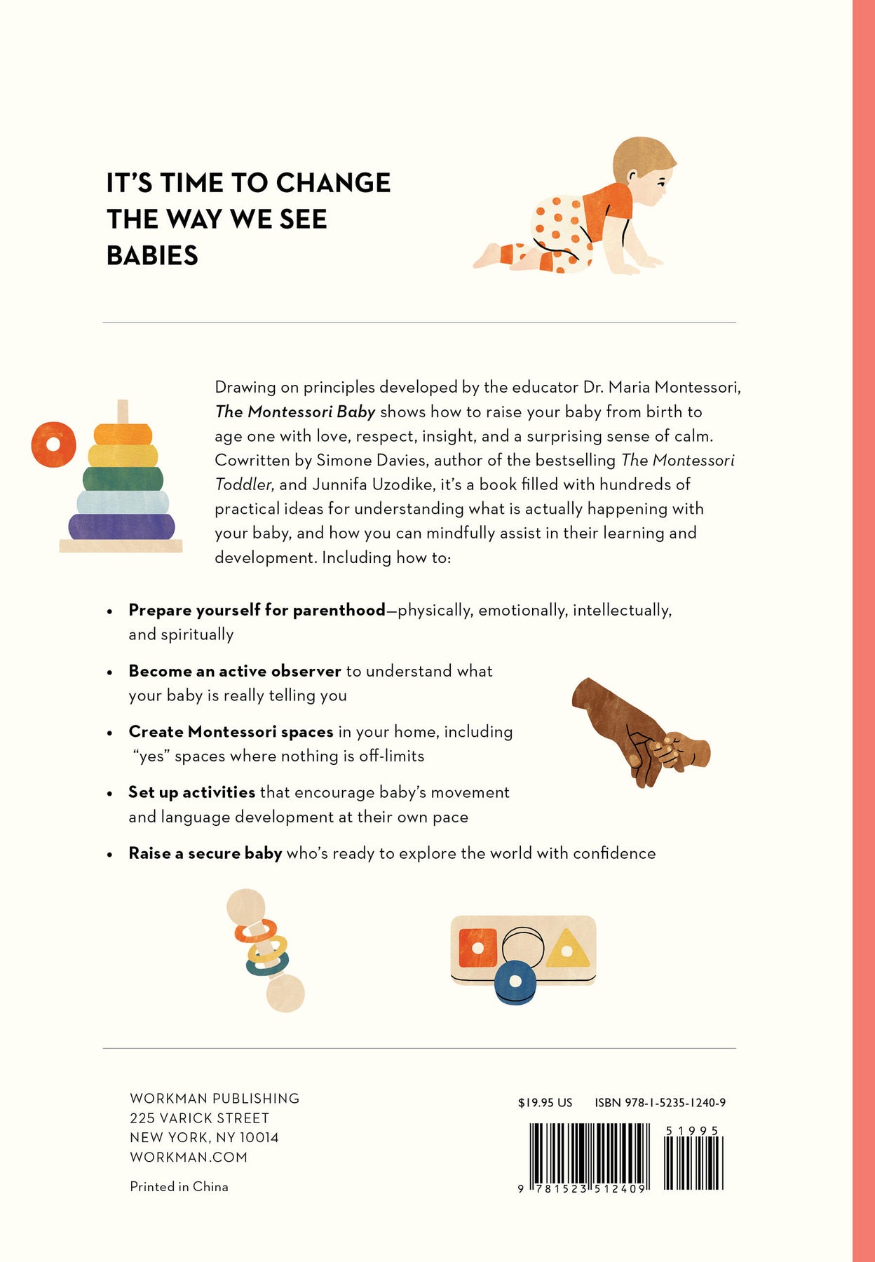 Drawing on principles developed by the educator Dr Maria Montessori, The Montessori Baby shows how to raise your baby from birth to age one with love, respect, insight, and a surprising sense of calm. Cowritten by Simone Davies, author of the bestselling The Montessori Toddler, and Junnifa Uzodike, it’s a book filled with hundreds of practical ideas for understanding what is actually happening with your baby, and how you can mindfully assist in their learning and development. Including how to: