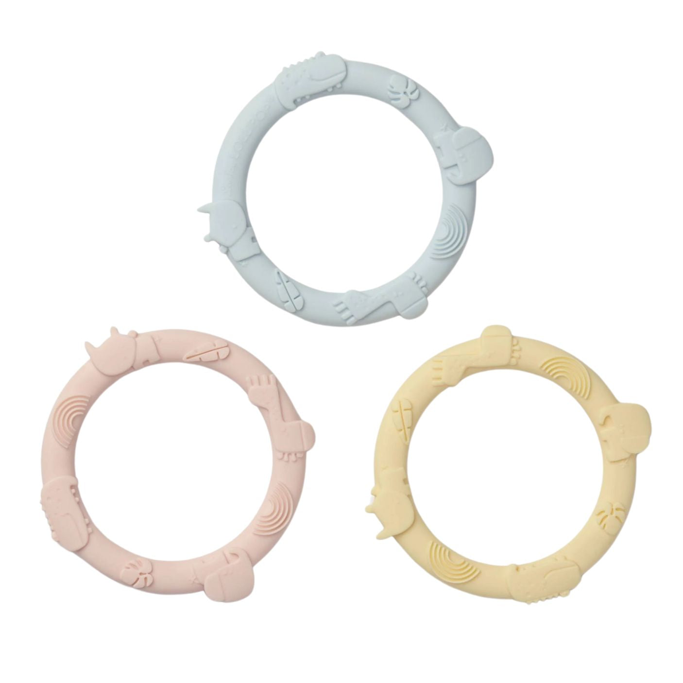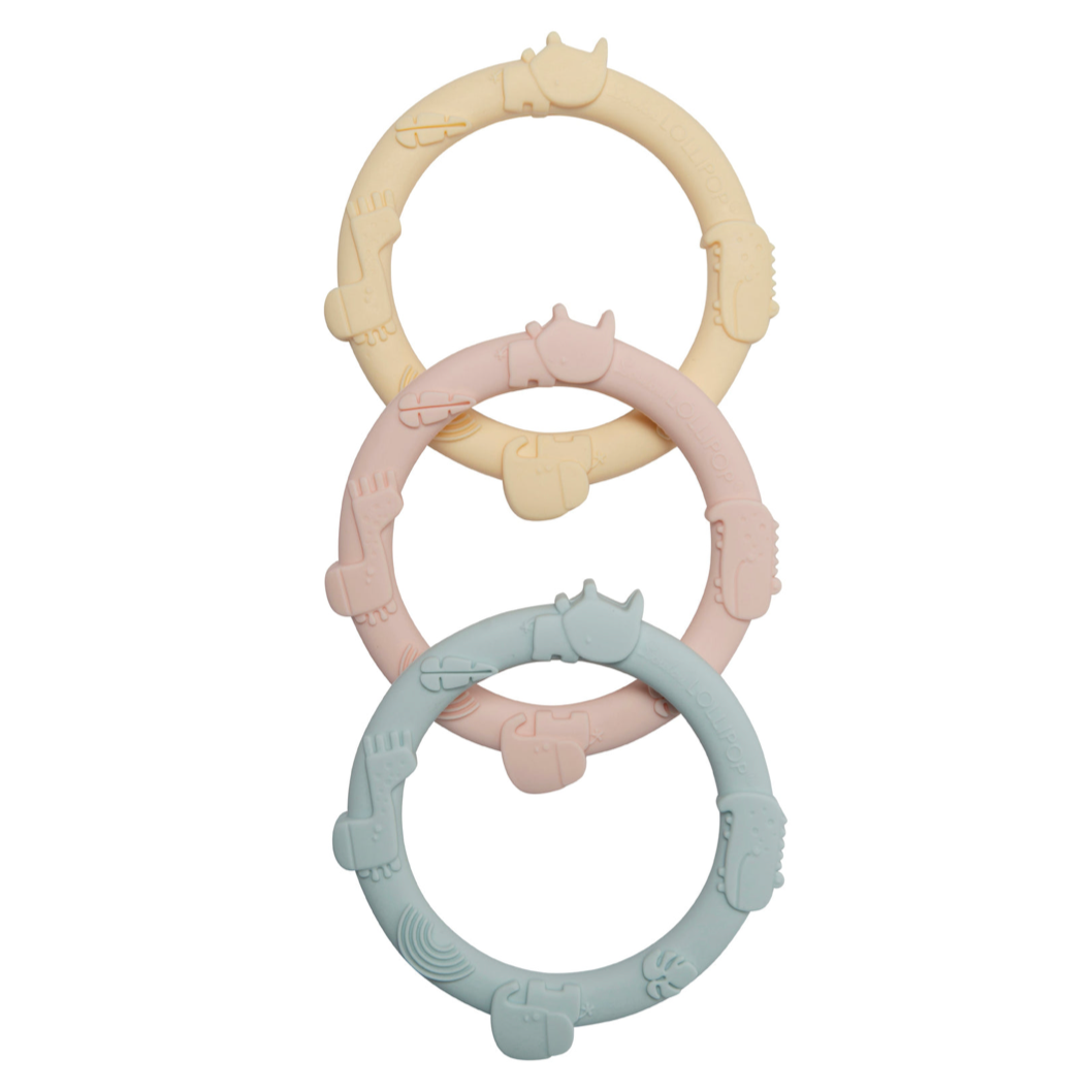 These lightweight teething rings are perfectly sized for little hands to grasp and explore! Made from safe and durable food-grade silicone, they provide endless opportunities for sensory play and discovery. Free of BPA, PVC, phthalates, lead, and cadmium. Comes in a pack of 3 for non-stop fun.